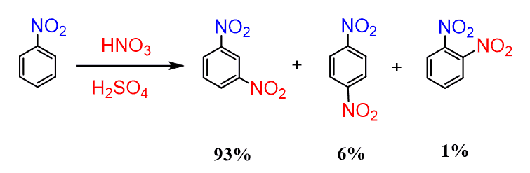 Let’s explain why the nitration of nitrobenzene occurs mainly at the meta position: