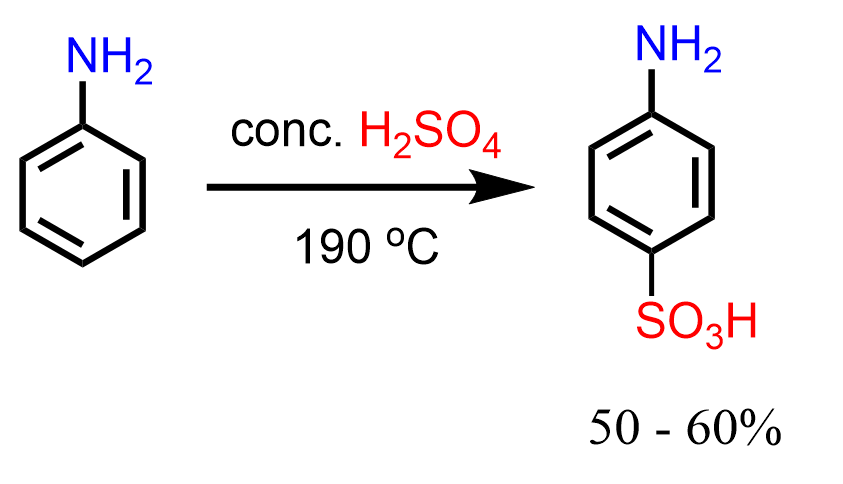Interestingly, it was found that, unlike nitration, aniline can be submitted to direct sulfonation using concentrated sulfuric acid at 190 oC, and the para isomer is obtained (Clayden – Organic Chemistry):