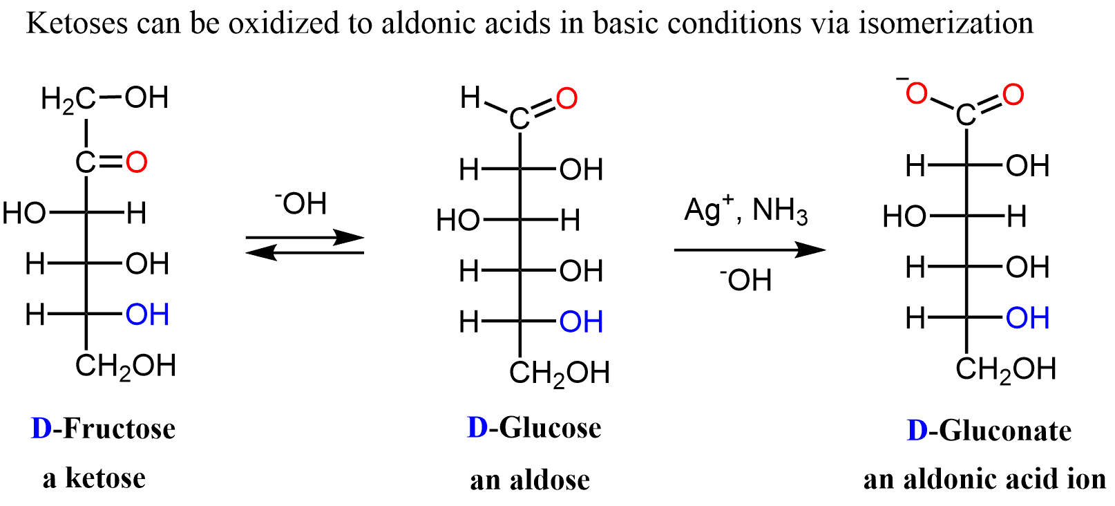 There are different ways of oxidizing both aldoses and ketoses performed under basic conditions to promote the isomerization: