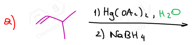 To avoid possible rearrangements, an alternative method for the hydration of alkenes is used, known as the Oxymercuration-Demercuration or Oxymercuration-Reduction. In this method, mercury acetate (Hg(OAc)2) is used as a catalyst for the addition of water to alkenes:
