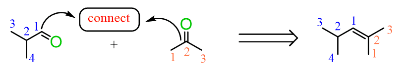 Connecting the two carbons of each carbonyl, we can visualize where the C=C double bond was in the initial alkene.