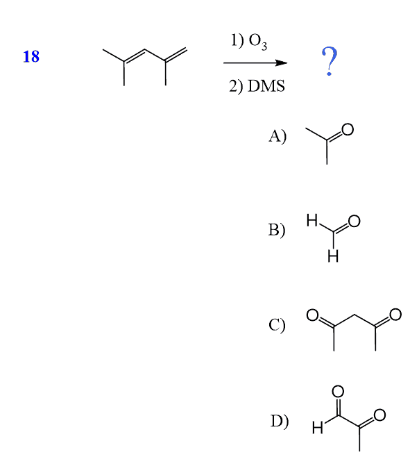 In the following Practice Problems, we will determine the products for ozonolysis of alkenes and alkynes, as well as retrosynthetic analysis to identify the starting alkene and alkyne in the ozonolysis reactions.