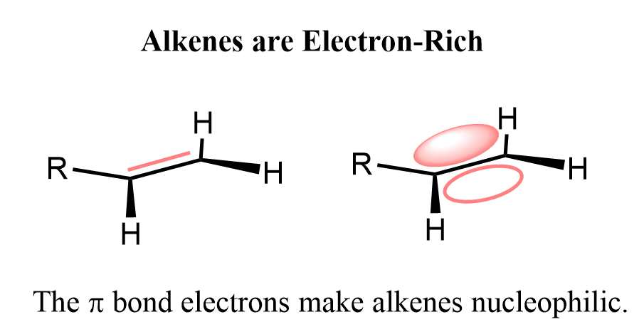 This may look strange because we don’t see a nucleophile attacking a bromine molecule every day. However, remember that double bonds are electron-rich because their double bonds contain an extra pair of electrons compared to single bonds. These extra electrons are found in the π bond, which is weaker and more reactive than a σ bond.