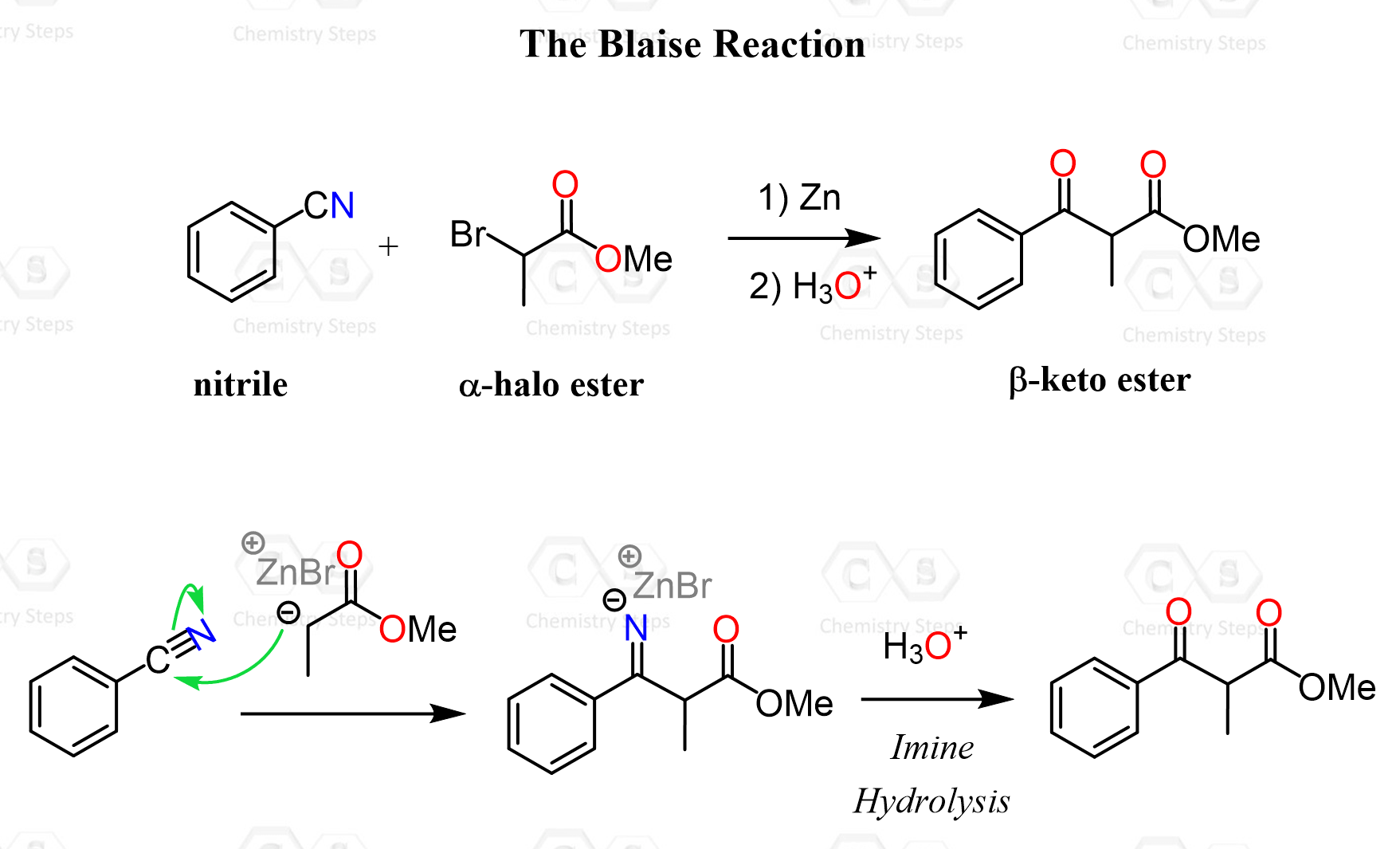 The Blaise reaction is a variation of the Reformatsky reaction, where instead of a typical carbonyl group, a nitrile is used as the electrophilic species.
