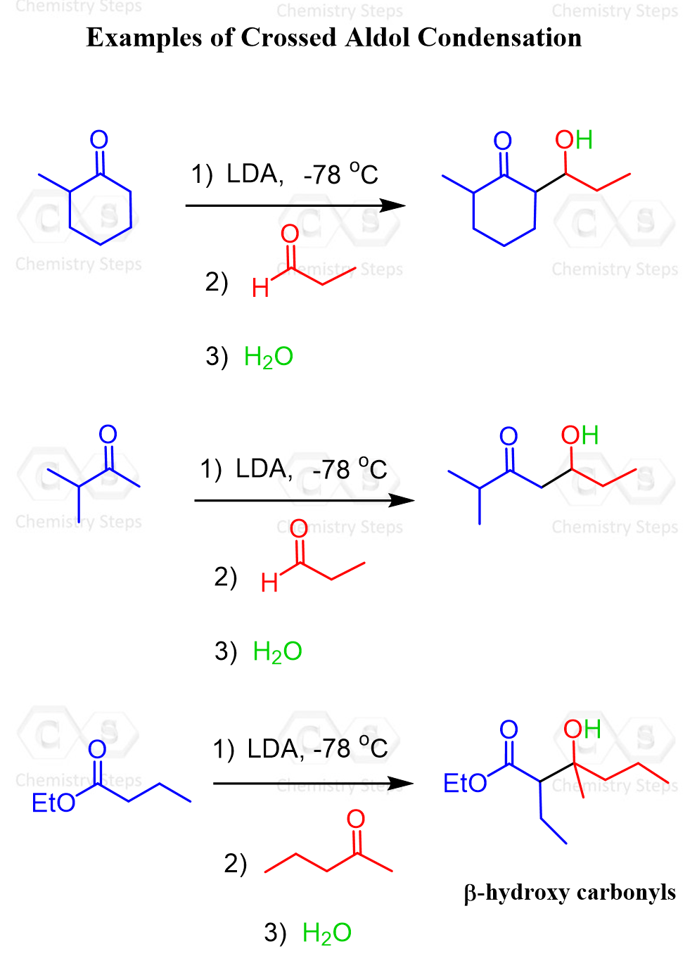We have seen in the previous post that crossed aldol reactions allow us to prepare β-hydroxy carbonyl compounds by reacting an enolate (formed from one carbonyl compound) with another aldehyde or ketone, followed by protonation.