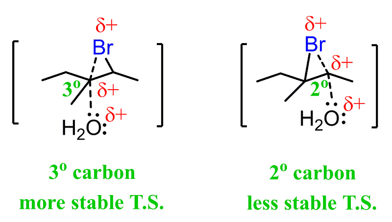 This is explained by the stability of the energy differences between the two possible transition states: