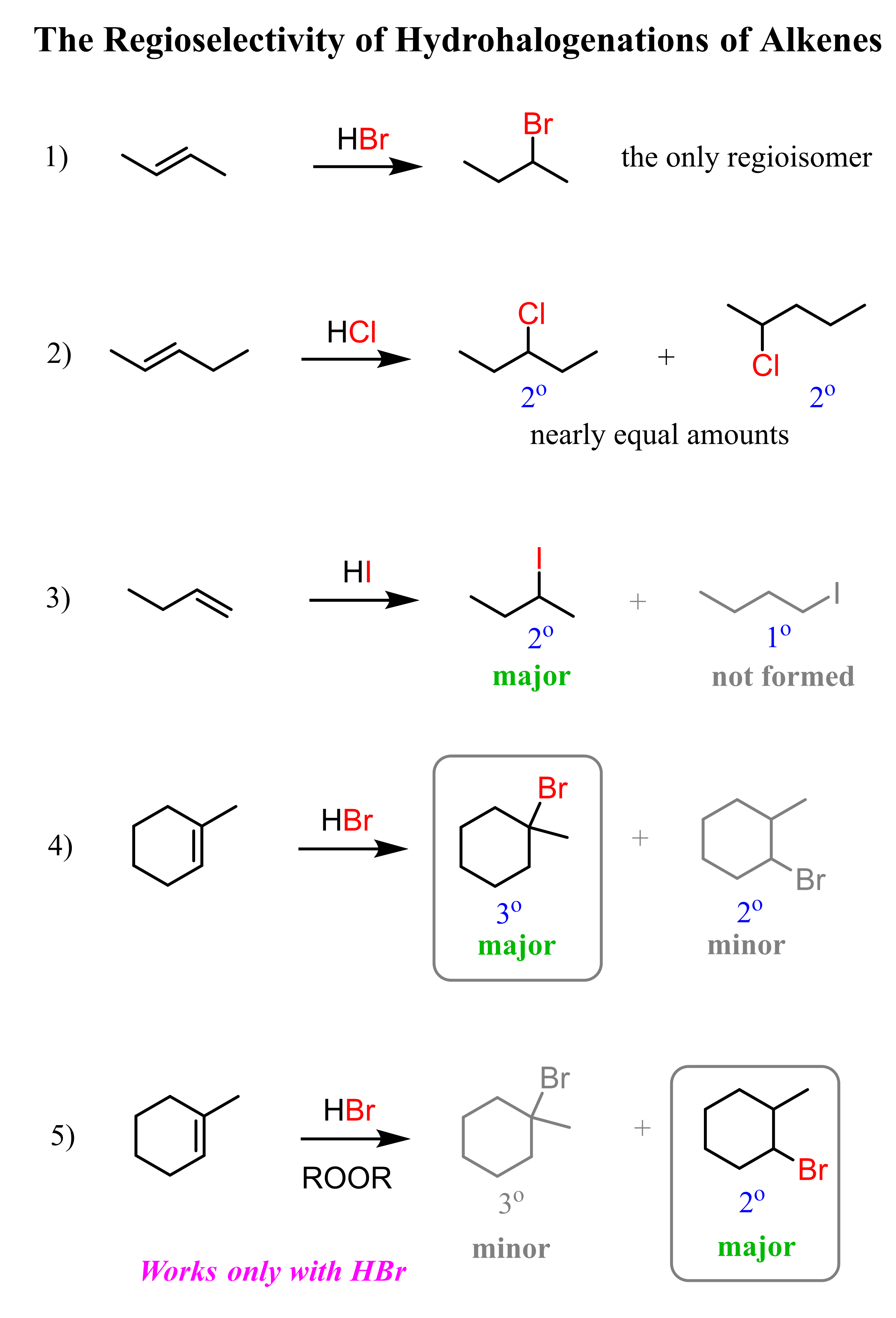 Addition of HBr, HCl, and HI to Alkenes