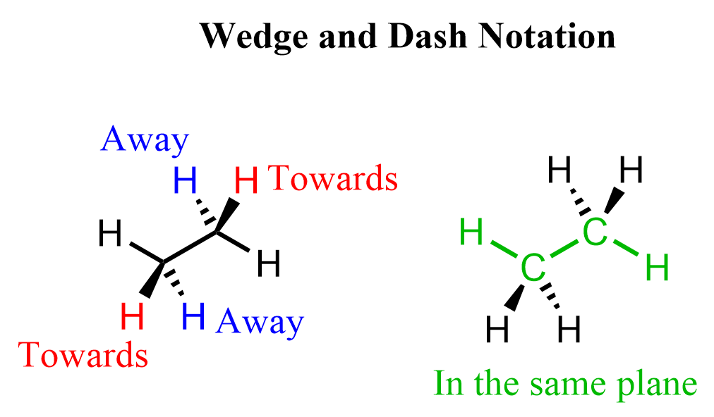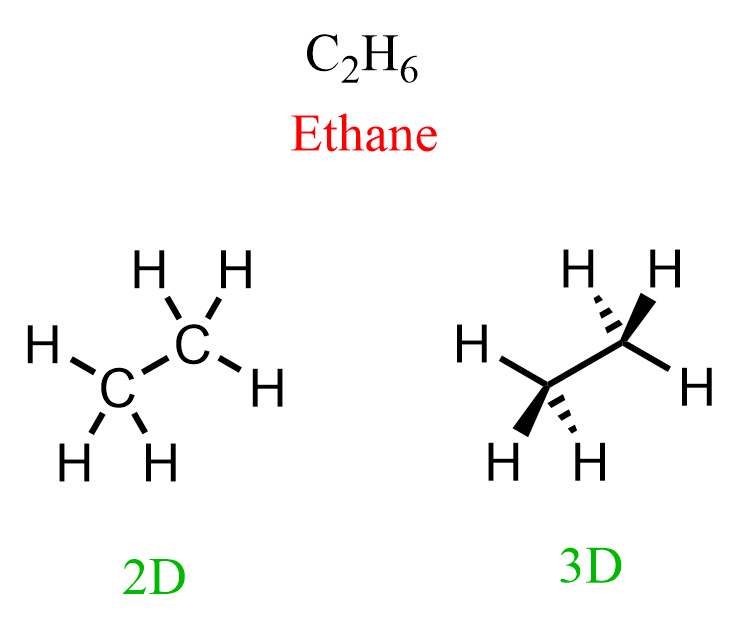 Back in general chemistry, you have encountered organic molecules which were shown either by a formula or a 2-D structure where all the atoms were shown in the same plane. For example, methane, ethane, propane, and even complex molecules such as glucose were shown with plane lines (bonds):