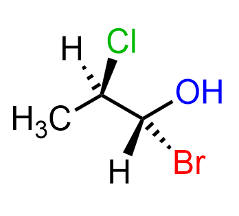 On the second carbon, we have an OH pointing straight up, a Br on the bottom-left, and an H on the bottom-right. The sawhorse projection is in between the bond line and Newman projections: