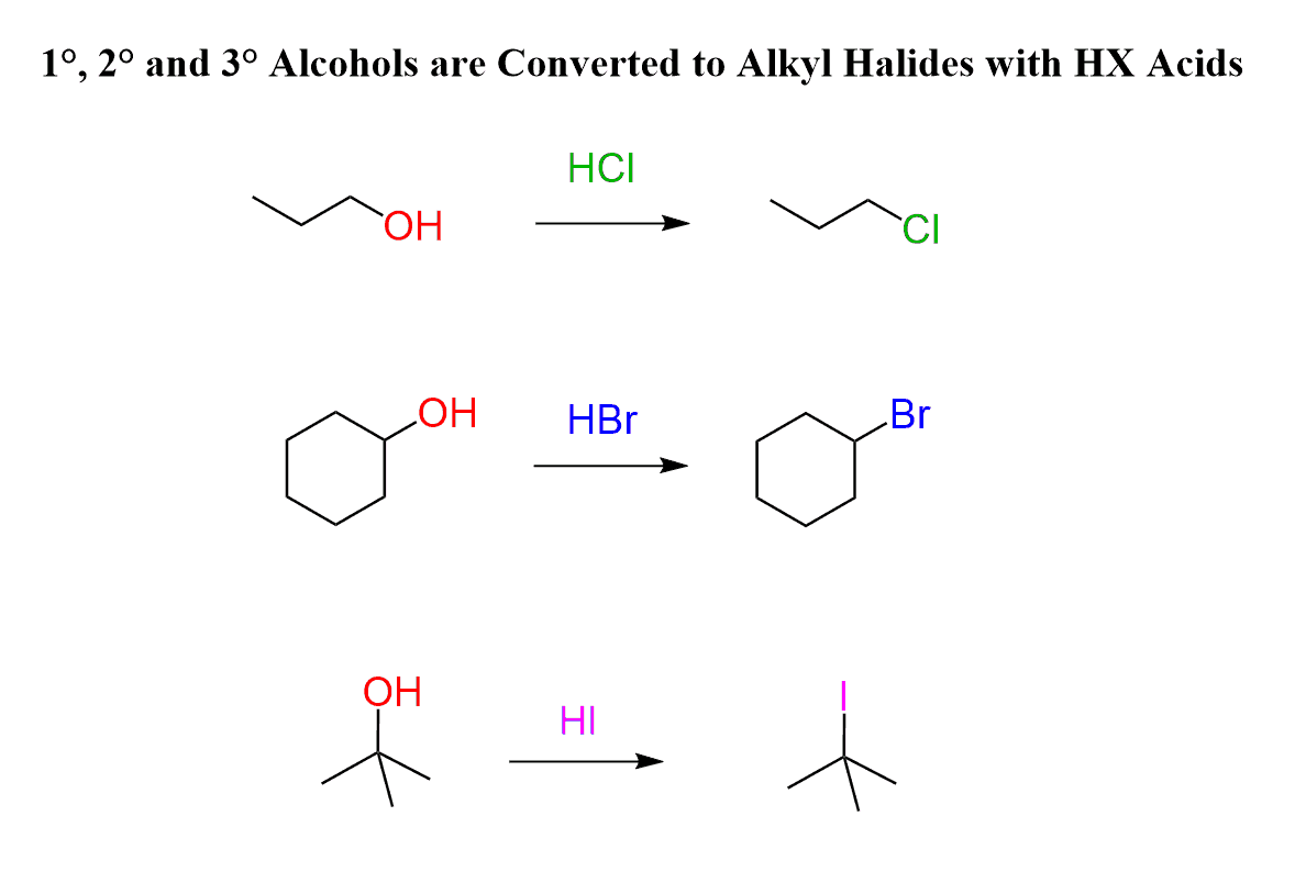 At this point, you might have a fair question to ask, which is why not use an acid like HCl or HBr to achieve these transformations? Especially because they do work for tertiary alcohols.