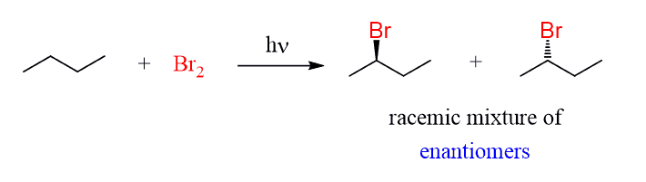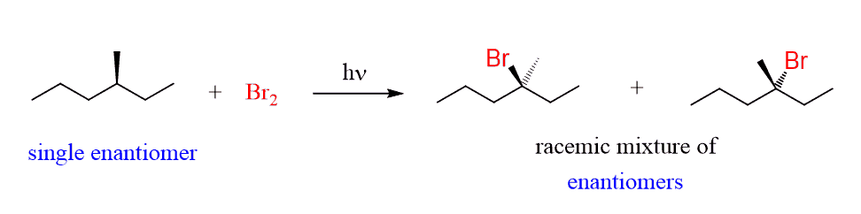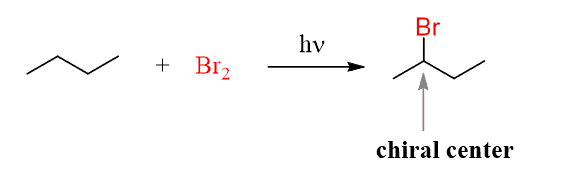 Another possibility to consider for the stereochemistry of radical halogenation is then the starting material contains a chirality center that is not involved in the reaction.