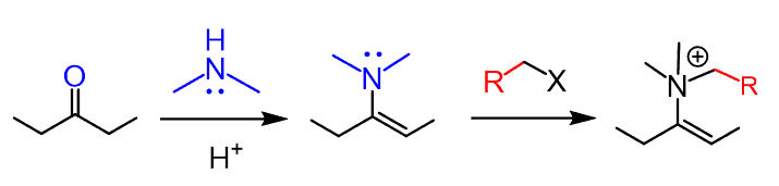 You may wonder what enamines have to do with the ketone and the transformation shown with the question mark.
