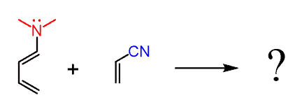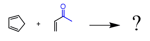 We need to bring back the endo-rule for the reactions of cyclic dienes for a moment. For example, suppose you needed to predict the major product of this Diels-Alder reaction: