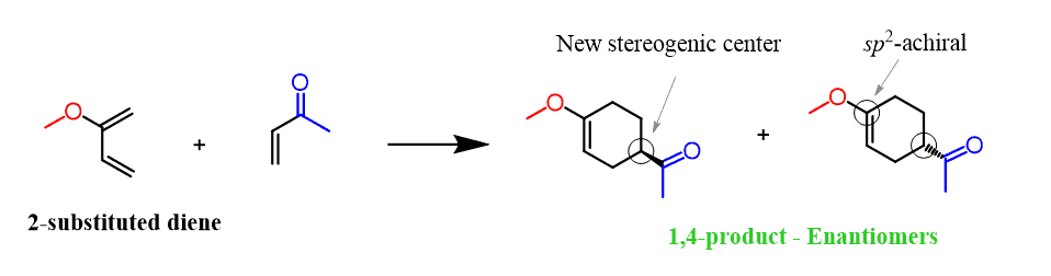 In reactions of both 1-substituted diene and 2-substituted diene, there is a formation of a stereogenic center(s) which we ignored so far to avoid additional complications. And depending on what your instructor asks, you may not need this at all. However, we will address this as well.
