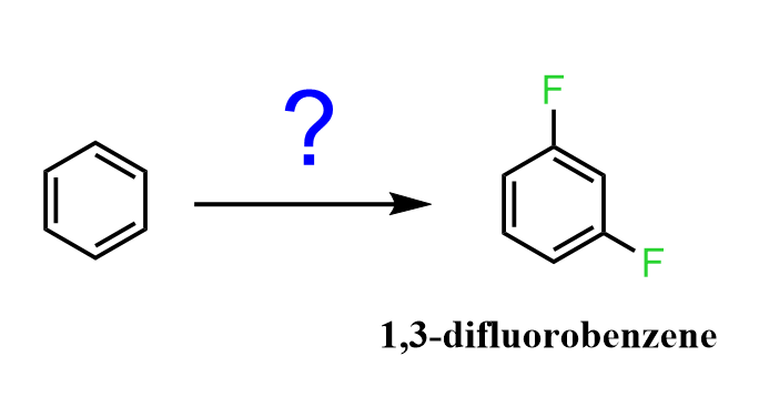 1) Therefore, the first question to think about is how to prepare 1,3-difluorobenzene from benzene.