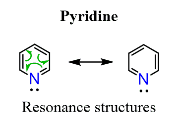 What’s interesting about the structure of imidazole is that it combines then two principles we discussed above for favoring of aromaticity. It has one lone pair in a perpendicular to the conjugated system sp2 orbital which is not part of the aromatic system and another one in a p orbital because the nitrogen with single bonds is sp2 hybridized favoring the aromaticity. This, in total, makes 6 electrons of the aromatic system and one lone pair which is not part of that: