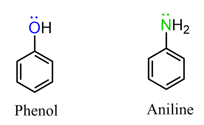 Another possibility is when the heteroatom is not in the ring. For example, phenol and aniline where, in addition to the six delocalized electrons, there is a lone pair on the oxygen and nitrogen respectively: