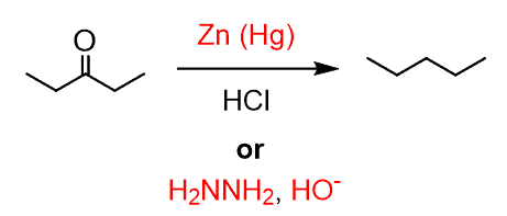 The two most common reactions for performing this reduction homogeneously are the Clemenson and Wolff-Kishner reactions:
