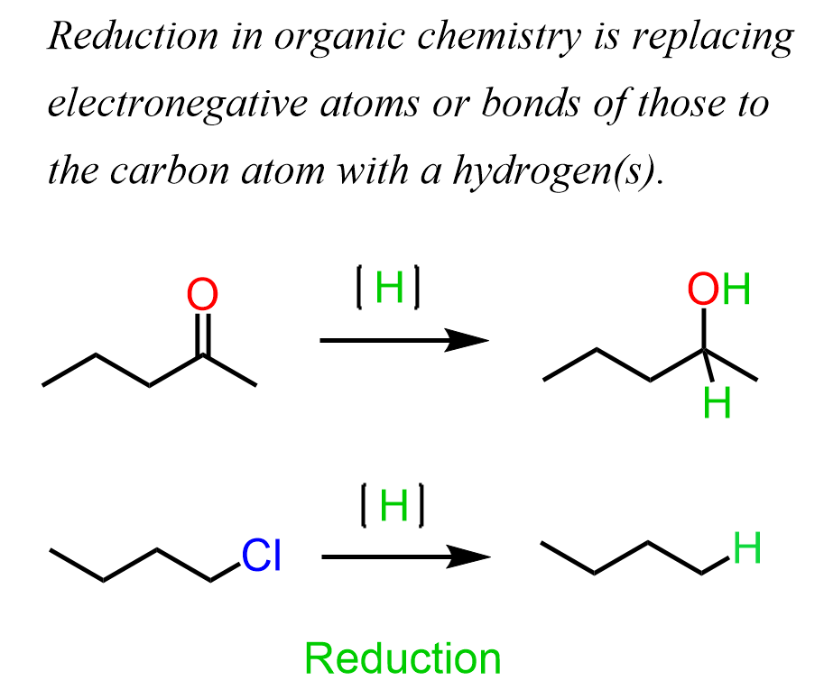 One type of these reactions is the reduction by hydride ion sources such as LiAlH4 and NaBH4. As a big picture, you can view any reduction of a carbonyl compound, as shown below: